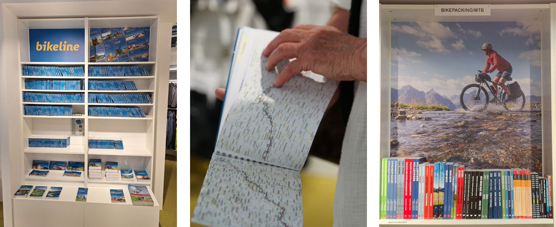 Die zijn echt nergens meer zo te bekijken als bij ons. Heerlijk om de route nog een "fysiek" te benaderen. Er is zélfs een hele plank met alleen maar Bikepacking fietsgidsen. Daar zijn we dan ook wel een beetje licht trots op.
