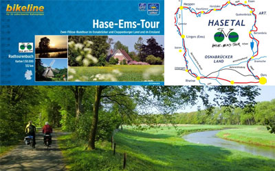 Hase-Ems - 330 km U kunt met de trein vanuit Enschede naar het Duitse Rheine. Wij zelf zouden vanuit Nederland naar de Hase-Ems-tour toe fietsen. Bijvoorbeeld uw auto neerzetten in Oldenzaal: u fietst dan in ongeveer 40km naar de route toe. Dezelfde truc kunt u doen door vanuit Emmen naar Haren (DLD) te fietsen. De route voert u heel lieflijk langs de riviertjes de Ems en de Hase. Vanuit Osnabrück gaat een doorsteek weer terug naar de Ems. Een route om elk jaar weer te doen ter opwarming van het fietsseizoen. Bewegwijzerd. Fietsgids: Hase-Ems-Tour
