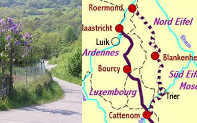 Rondje Eifel - 475 km De Eifel is een ongekend mooi fietsgebied vlak naast de deur. Als dit de eerste keer voor u is, zult u nog verbaasd staan van de schoonheid die u onderweg tegenkomt. De Eifel betekent prachtige vergezichten, veelal autovrij fietsen in een groene oase, oude spoorbanen en veel bewegwijzerde fietsroutes, veelal langs mooie en lieflijke riviertjes. We hebben zes van deze fietsroutes zo aan elkaar weten te knopen dat er een Rondje Eifel is ontstaan. Hierin gaat u het mooiste van de Eifel zien. Door zoveel mogelijk langs rivieren en oude spoorlijnen te fietsen is het de makkelijkste route om de Eifel op de fiets te leren ontdekken. Alleen in onze RouteAPP (geen fietsgids): meer info