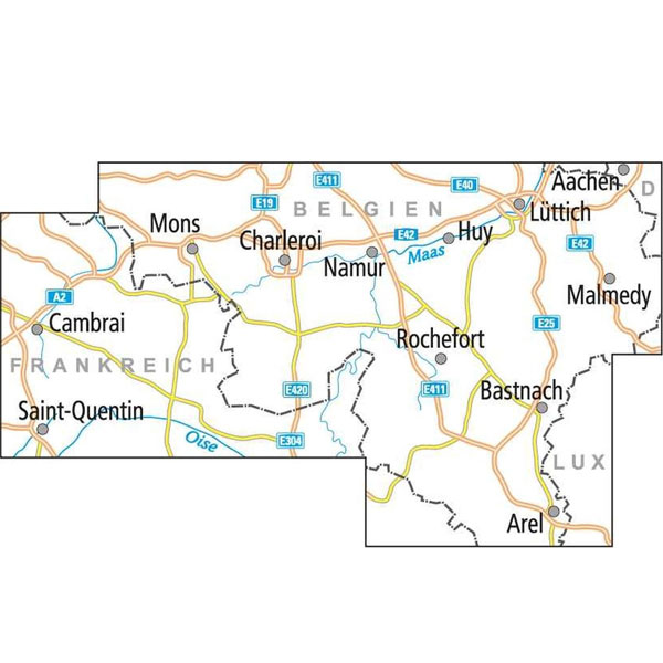 Wat een fietsinformatie: aanwezige knooppunten, Eurovelo, maar ook de nationale fietsroutes alszijnde bijvoorbeeld de veel gefietste Vlaanderen Fietsroutes staan helder op de kaart ingetekend. Ook veel informatie aanwezig als zijnde campings, jeugdherbergen, bezienswaardigheden etc. Ook hoogtelijnen zijn aanwezig. Die zie je ook lang niet altijd op elke kaart terugkomen. Kaart bestrijkt verder een enorm gebied waardoor je maar 1 kaart nodig hebt. Dit is tevens een beetje het nadeel want de schaal is wat grover uiteraard, te weten 1:150.000.