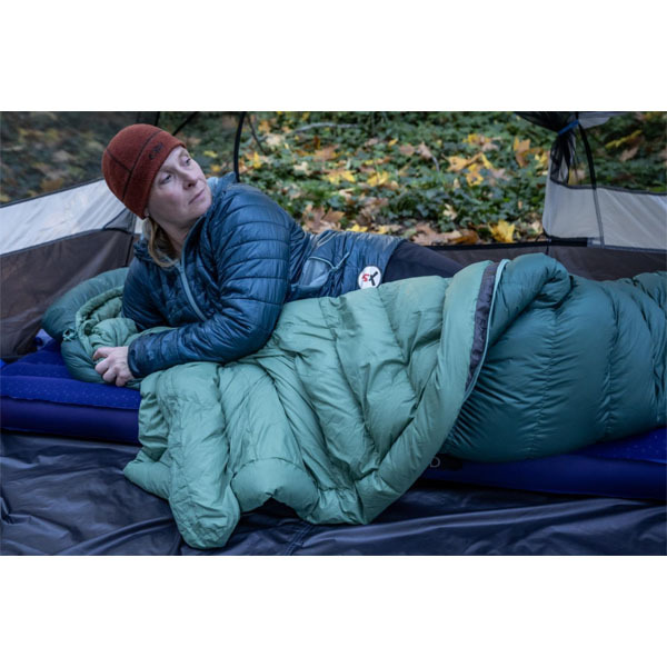 • Ritssluiting loopt door tot het voeteneinde, zodat de slaapzak ook goed als deken is te gebruiken